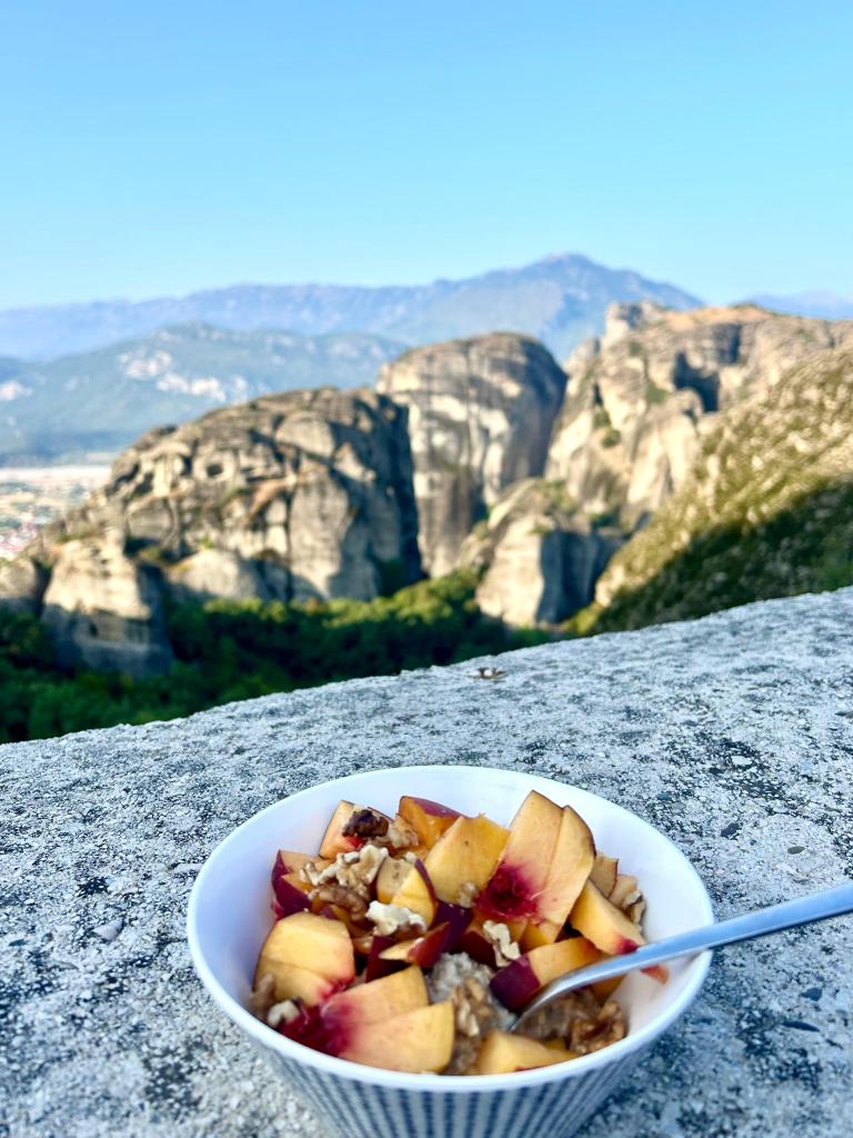 · Bowl d’avoine, miel, nectarine et noix : Pour un petit-déjeuner ou un encas gourmand, c’est l’idéal. L’avoine apporte de l’énergie, le miel de la douceur, et les fruits frais de saison (comme les nectarines en ce moment en Grèce !) avec des noix donnent du croquant. Un vrai régal, sans besoin de réfrigération !