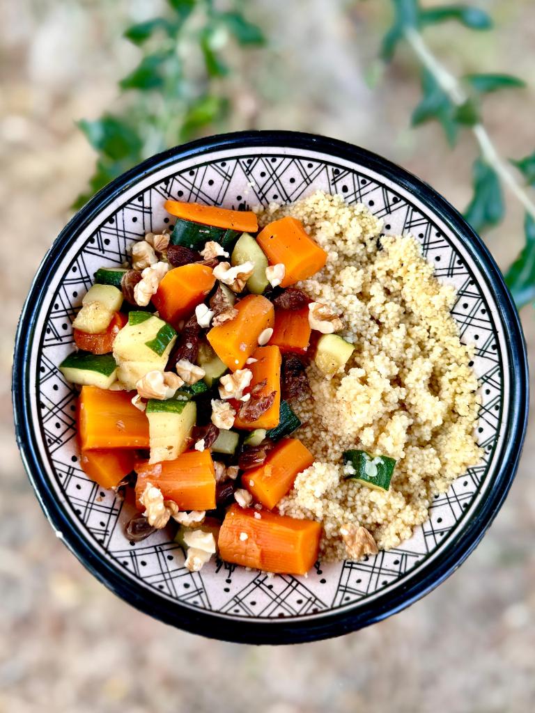 · Tajine de légumes et son couscous : Un classique réconfortant, super parfumé et ultra simple à faire. On le prépare avec les légumes du marché, un peu d’épices, et hop, un plat chaud qui fait voyager !
