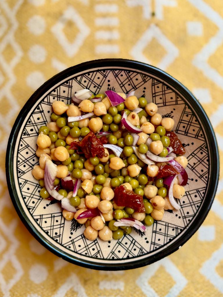 · Salade fraîcheur pois chiches, petits pois, tomates séchées : Parfaite pour les journées ensoleillées ! C’est frais, vitaminé, et ça se prépare en un clin d’œil avec des ingrédients qui se gardent sans problème.